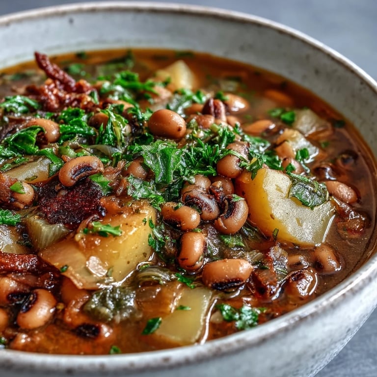 Black-eyed peas are traditionally tied to Southern cooking and New Year's traditions, but there's no reason to limit them to winter. In summer, serve it cold as a chunky salad over greens, and in fall, make it richer by adding a handful of kale in those last minutes of simmering. The base recipe stays the same but adapts beautifully to whatever your garden or market offers.