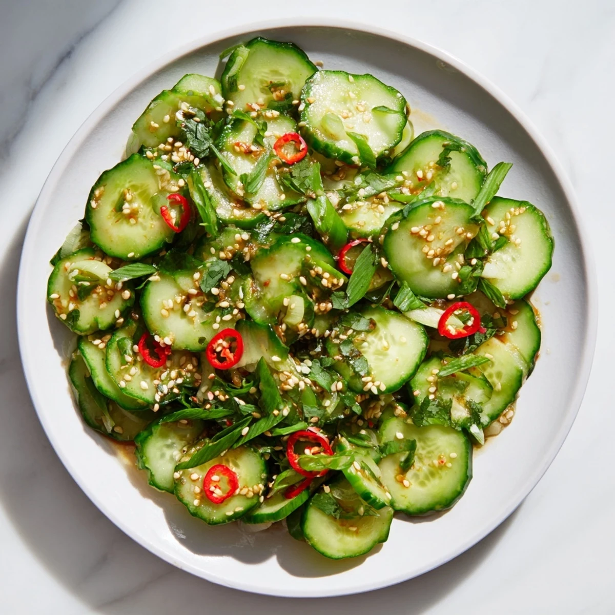 - Spring onions: They add a gentle sharpness without overpowering the cucumbers, and I slice them thin so they soften just enough in the dressing.