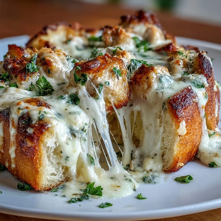 Pin My neighbor knocked on the door one Tuesday evening with that look—the one that says she's hosting dinner and needs something impressive fast. I'd just pulled garlic bread from the oven, and she asked if I could somehow marry it with the creamy Alfredo I'd mentioned weeks before. That spontaneous challenge turned into this dish, and now it shows up at every potluck uninvited. It's the kind of recipe that makes people pause mid-conversation to ask for seconds.