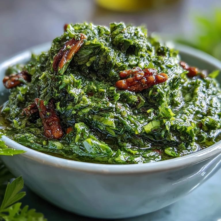 Pin When spring arrives and dandelion greens emerge in gardens and markets, it's time to transform these vibrant, slightly bitter leaves into something extraordinary. This Dandelion Pesto with Garlic and Pine Nuts celebrates the wild, earthy flavor of dandelion greens, balanced with toasted pine nuts, sharp Parmesan, and bright lemon juice. In just 15 minutes, you'll have a vibrant green condiment that's perfect for tossing with pasta, spreading on crusty bread, or drizzling over roasted vegetables. The process is simple—no cooking required—just fresh ingredients and a food processor. This Italian-inspired sauce offers a sophisticated twist on traditional basil pesto, bringing a unique bitterness that pairs beautifully with rich, creamy dishes.