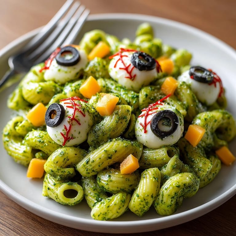 Pin This playful Green Monster Mac and Cheese turns a family favorite into something vibrant, fun, and just a bit spooky. By sneaking in spinach and topping with mozzarella "eyeballs," you add nutrition and a dash of excitement—ideal for Halloween or anytime you want dinner with a little drama.