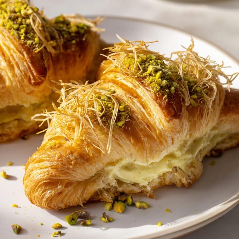 Pin There was a moment in a small patisserie in Lyon when I watched a baker layer phyllo sheets with such casual precision that it seemed almost musical—the butter brush whisking across paper-thin dough, the sugar crystals catching light. That afternoon, I tasted my first pistachio croissant, and it wasn't the delicate lamination that stuck with me, but how the nutty cream dissolved on my tongue while something crispy crackled above it. Years later, I found myself trying to recreate that contrast in my own kitchen, and these croissants became the answer.