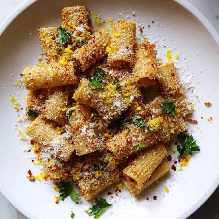 Pin Crispy, golden pasta chips tossed with zesty lemon, Parmesan, and a kick of chili, perfect for snacking or entertaining.