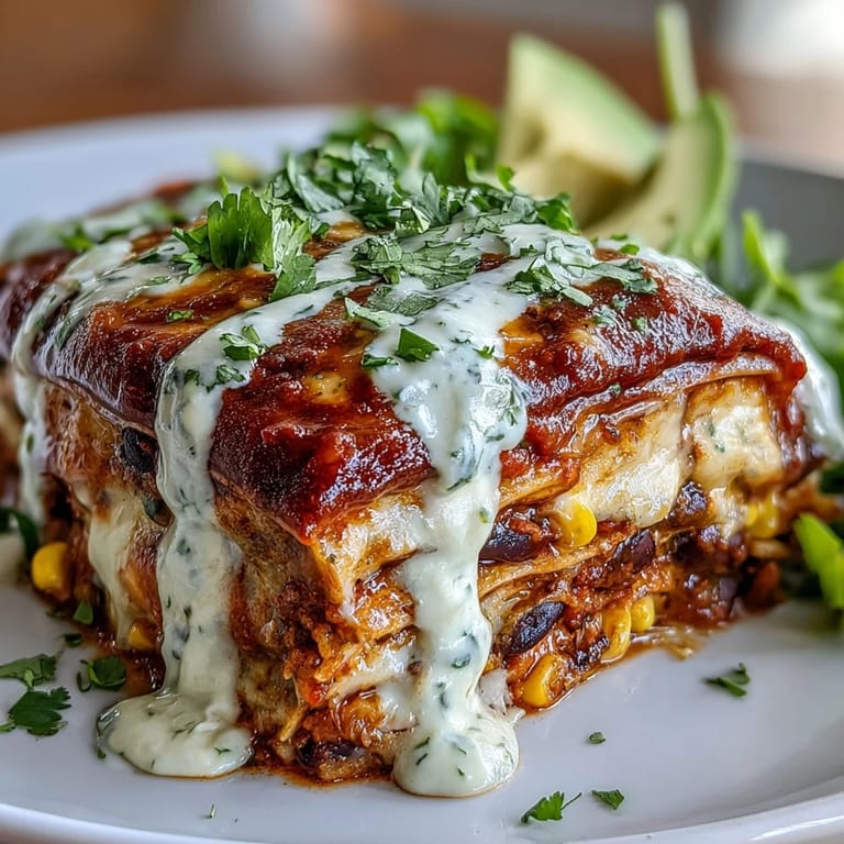 Pin My cousin showed up at a potluck with this casserole last summer, and I watched people who claimed they didn't eat vegan food go back for thirds. The way the avocado crema pooled across each slice, the tortillas soft but not mushy, the beans earthy and deeply spiced—it felt like comfort food that happened to be completely plant-based. I pestered her for the recipe right there in her kitchen, scribbling notes while she laughed and told me the real secret was patience with the layering and not skimping on the lime juice in that crema.